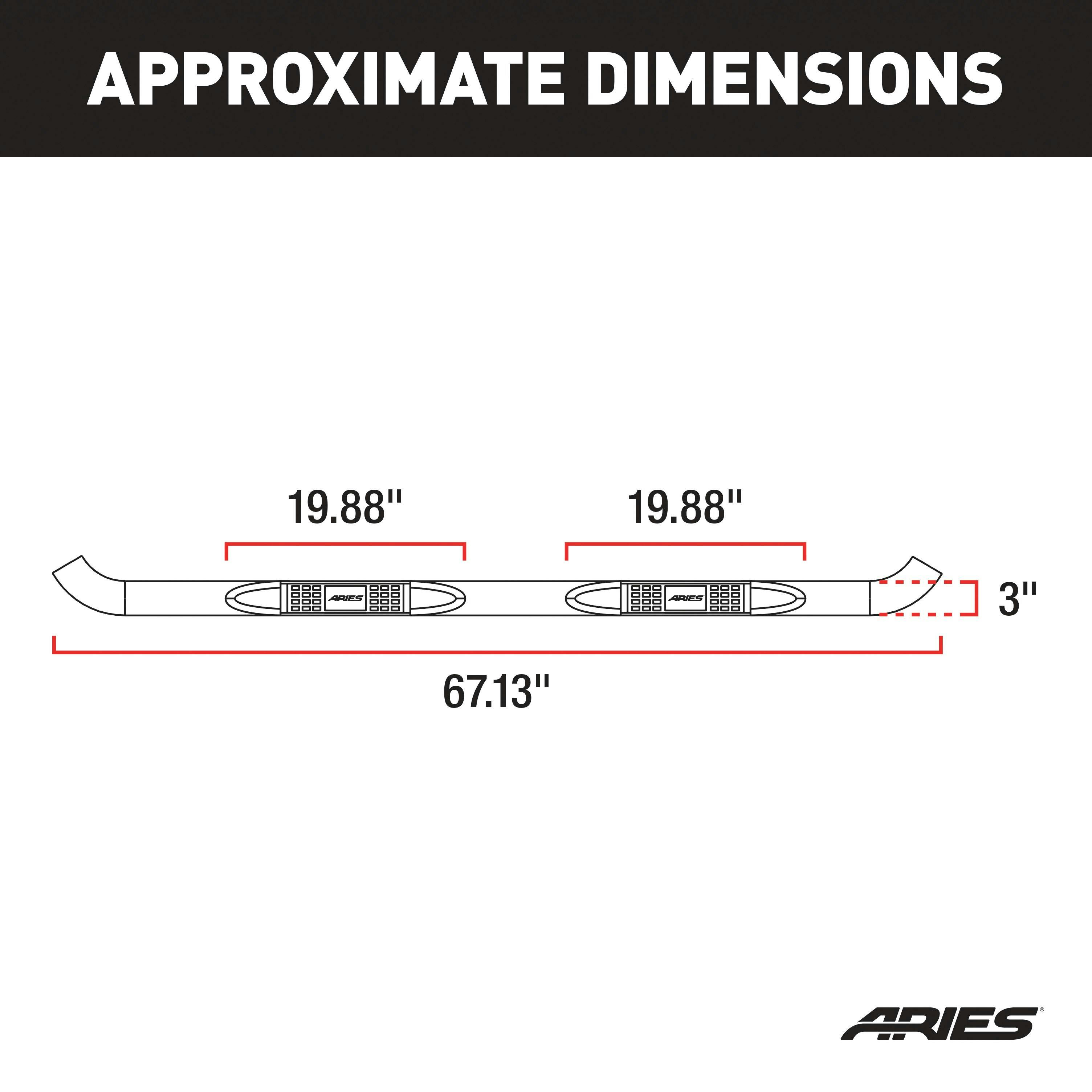 ARIES 3 in. side bars are more than a fancy decal for your truck, Jeep or SUV. They are a confident first step on each new adventure. These 3 in. nerf bars are constructed from strong carbon steel for superior rigidity, and they feature a sleek semi-gloss black powder coat finish. For an added edge, each nerf bar also goes through an E-coat process, before receiving its black powder coat, to strengthen and protect the final finish against peeling, chipping and scratching. ARIES 3 in. round side bars are also available in polished stainless steel or semi-gloss black powder-coated steel. All ARIES 3 in. nerf bars come with heavy-duty steel brackets and non-skid step pads. The mounting brackets are strong and custom-designed for specific makes and models to allow the side bars to contour to the lines of your vehicle. They offer easy installation and the strength necessary to provide sound footing. These particular custom nerf bars fit specific years of the Ford Explorer (see application info to verify fitment). ARIES 3 in. round side bars also come with non-skid step pads made of tough polypropylene. These step pads feature a textured pattern for enhanced safety, and they cover a wide portion of the tubes for a more comfortable step.