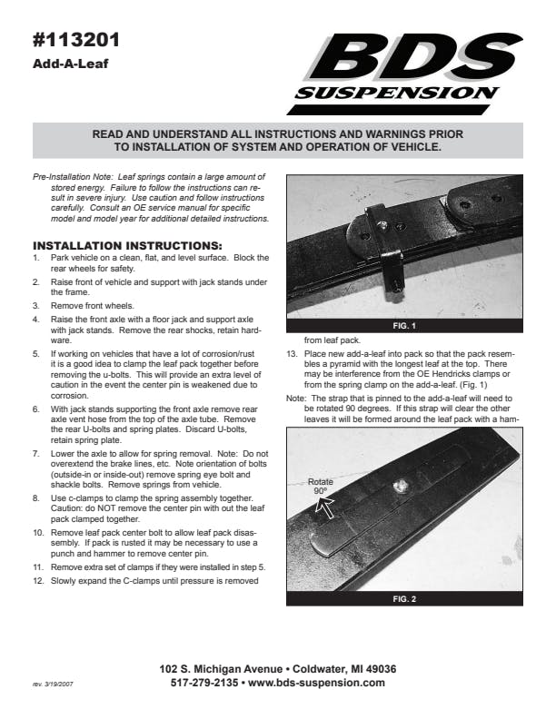 Does your truck need a little extra boost? Upgrade the front suspension of your 1978-1997 and 1999-2004 Ford F250 or F350 truck with BDS front add-a-leaf springs for improved handling through any conditions. These front add-a-leaf springs will provide a 1- to 3-inch lift height over stock springs. Perfect for hitting the trails, towing a heavy load, or just daily driving.This kit comes with complete instructions, new center pins, and new leaf alignment clamps. Order one kit per axle. Add-A-Leaf kits are sold as pairs except for dual add-a-leaf kits which are sold in sets of four. U-bolts are NOT included in add-a-leaf purchases