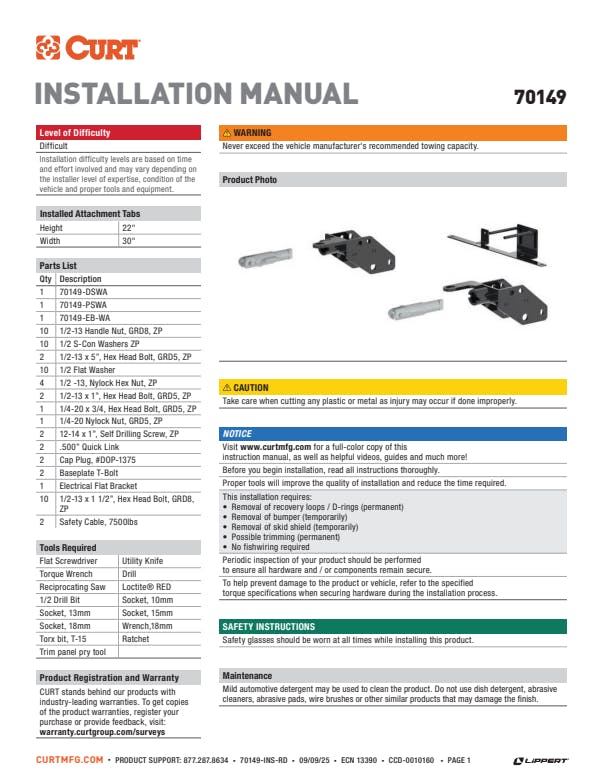 CURT tow bar base plates are engineered for a custom fit on each unique vehicle. This custom tow bar base plate fits select years of the Chevy Silverado 1500 (see application info to verify fitment). It features an OE style design to fully integrate with the front of the vehicle and maintain a factory look. This Chevy Silverado 1500 tow bar baseplate is constructed from high-quality steel and is precisely welded for a perfect fit. It is physically tested for absolute safety and peace of mind while dinghy towing. It also features a unique co-cured finish of liquid A-coat and highly durable powder coat to protect against the outdoor elements. This base plate for towing comes with attachment tabs, safety cables and installation hardware.
