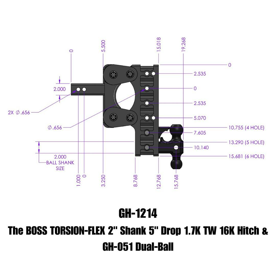 The BOSS TORSION-FLEX 2" Shank 5" Drop 1.7K TW 16K Hitch & GH-051 Dual-Ball