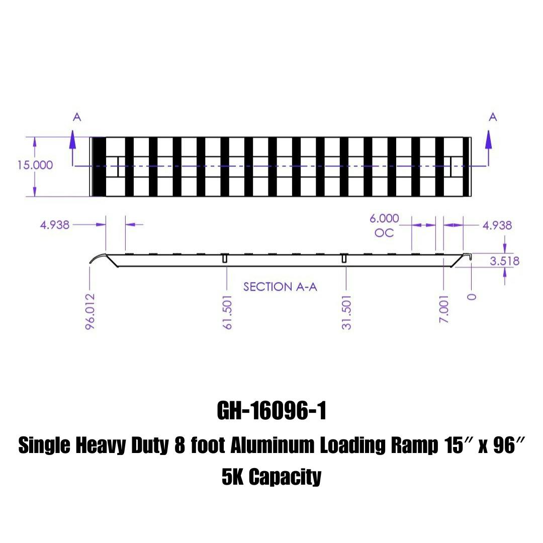 Single Heavy Duty 8 foot Aluminum Loading Ramp 15" x 96" 5K Capacity