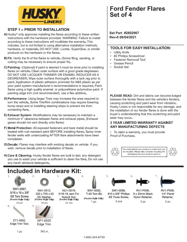 - Pocket Style Fender Flares are covered by Husky Liners Limited Lifetime Warranty, featuring Husky's legendary durability, so they're built to last. Proudly made in the USA with global materials.