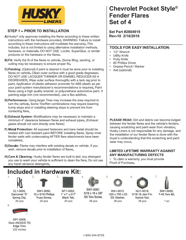 - Pocket Style Fender Flares are covered by Husky Liners Limited Lifetime Warranty, featuring Husky's legendary durability, so they're built to last. Proudly made in the USA with global materials.