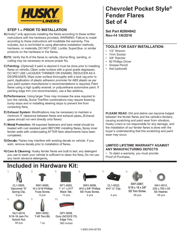 - Pocket Style Fender Flares are covered by Husky Liners Limited Lifetime Warranty, featuring Husky's legendary durability, so they're built to last. Proudly made in the USA with global materials.