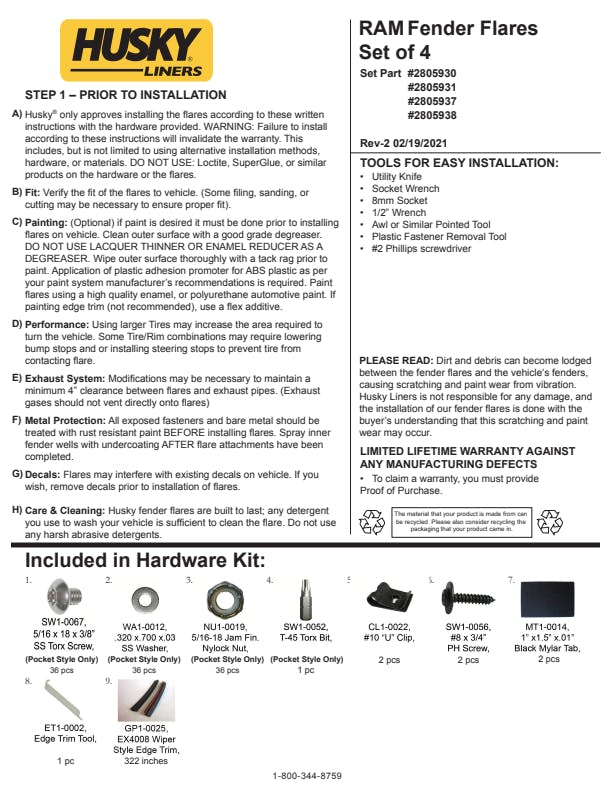 The name says it all: the size of these flares is extended to give you maximum protection for your paint job. This four-piece, easy-to-install set is precision-contoured so the look is low profile and blends seamlessly, even with extra-wide coverage. They're built to withstand any road and any kind of abuse, with impact- and abrasion-resistant Dura-Flex(R) 2000 ABS construction. Made in the USA with global materials and backed by Husky Liners Limited Lifetime Warranty.