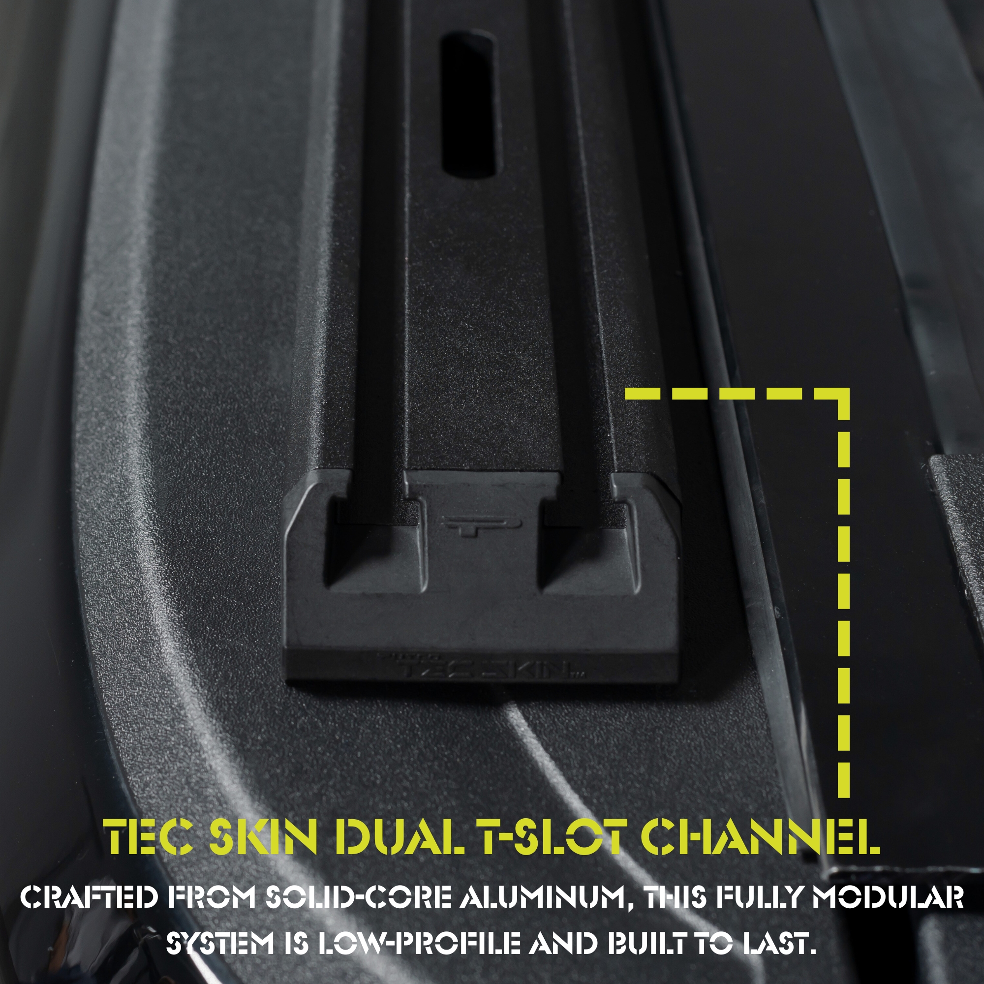 - TEC™ Skins T-Slot Bed Rail Caps Contents: Driver and passenger side TEC™ Skins T-Slot Bed Rail Caps with truck-specific hardware.