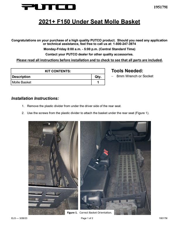 This storage basket is designed to fit perfectly on your F150, Super Duty, or Gladiator, utilizing the existing mounting points for a very simple and secure installation. Designed and Manufactured in the USA by Putco Inc. Des Moines IA.