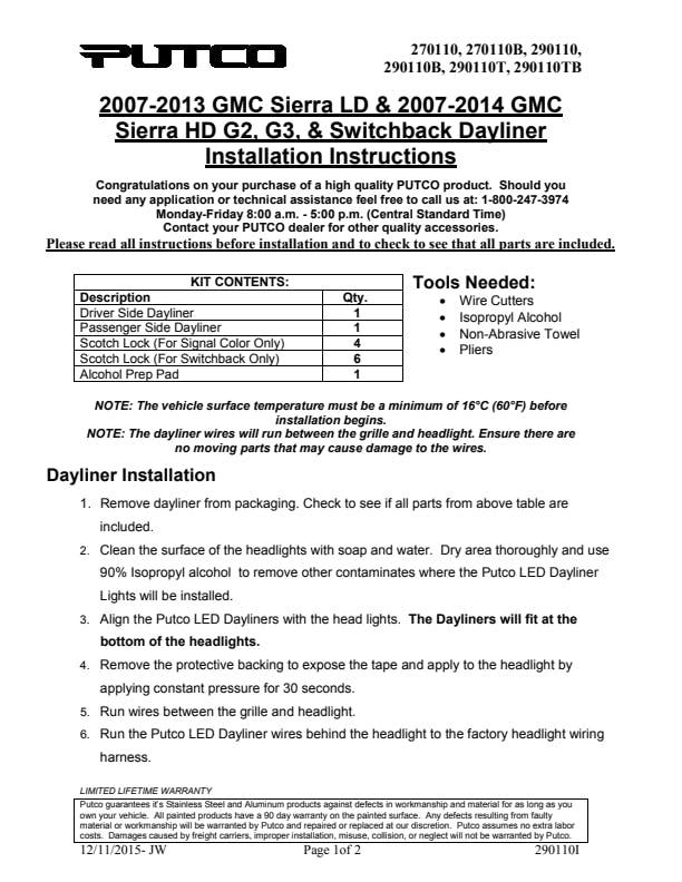 We know that you want to make a bold statement about your individuality with your vehicle. That's why we made our G3 DayLiners LED Headlight Trim. These headlight trim kits will give your vehicle a unique look that you can't get anywhere else. We design these kits to be in a polished black or chrome aluminum housing, each kit is CNC machined for a precise fit and to blend in with your vehicle's style. We use high-power LED bulbs that have a lifespan of 50,000 hours. DayLiner LED lights are also weatherproof, so you don't have to worry about them going bad in the rain or snow.Manufactured by Putco. Des Moines, IA.