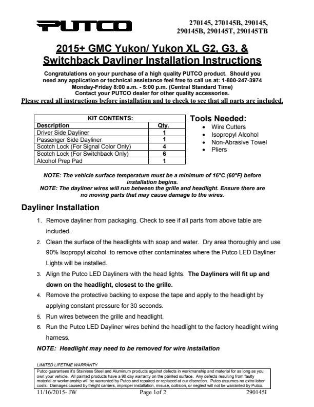 We know that you want to make a bold statement about your individuality with your vehicle. That's why we made our G3 DayLiners LED Headlight Trim. These headlight trim kits will give your vehicle a unique look that you can't get anywhere else. We design these kits to be in a polished black or chrome aluminum housing, each kit is CNC machined for a precise fit and to blend in with your vehicle's style. We use high-power LED bulbs that have a lifespan of 50,000 hours. DayLiner LED lights are also weatherproof, so you don't have to worry about them going bad in the rain or snow.Manufactured by Putco. Des Moines, IA.