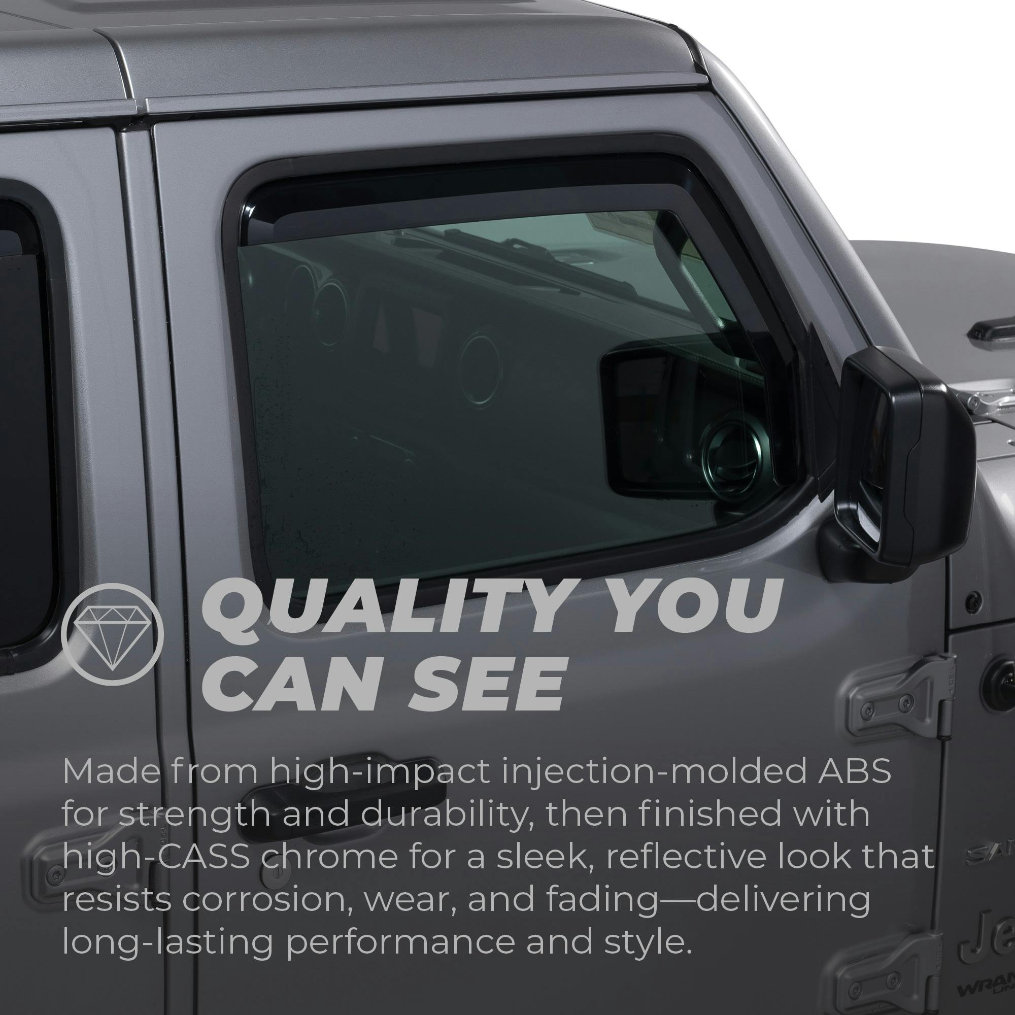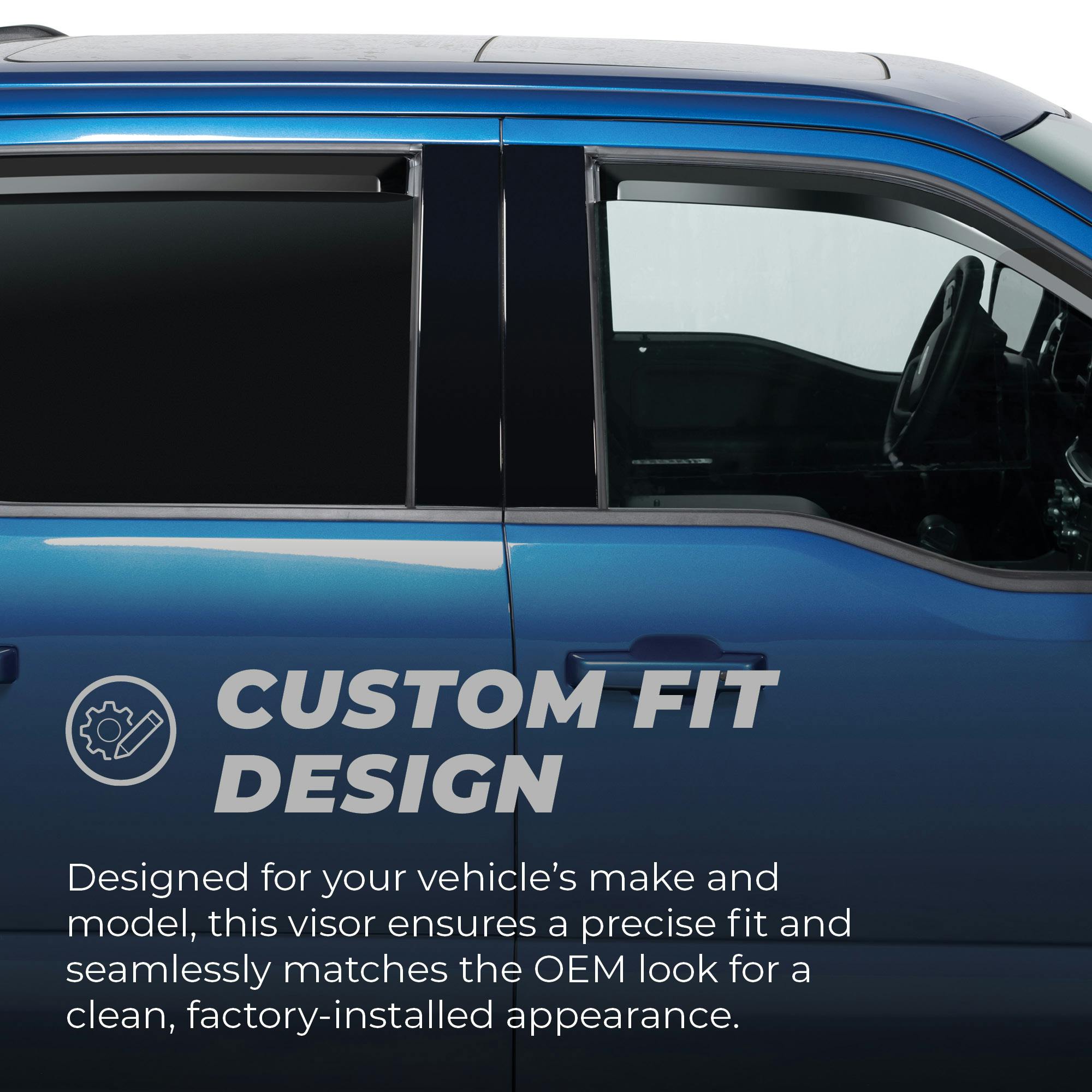 Putco Element tinted window deflectors are an excellent way to enhance the look and functionality of your truck. Made from a high-impact abs construction, these vent visors are designed to withstand harsh weather conditions and protect your vehicle interior from wind, rain, and debris when you have your windows down.The tinted design of these window deflectors not only helps to block out the sun's glare but also adds an attractive accent to your truck's appearance. The sleek, low-profile design of these deflectors provides a custom-fit appearance that looks great on any SUV or truck.Installation is a breeze with these deflectors, as they require no drilling or special tools. They attach easily to the exterior of your vehicle's windows using pre-applied 3M automotive tape, which ensures a secure and long-lasting hold.Putco Element tinted window deflectors offer a great way to improve your driving experience by allowing fresh air to flow into your vehicle's cabin while keeping the elements out. Additionally, they provide a stylish and functional upgrade that enhances your vehicle's appearance and value.