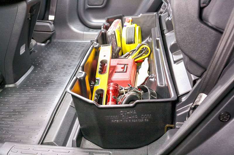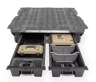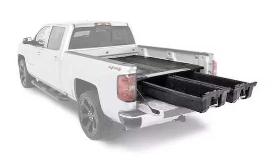 The DECKED in-vehicle storage system offers secure, weatherproof and organized storage with a sliding drawer toolbox system for pick up trucks. 100% American made, the DECKED system features two secure, full bed-length drawers capable of carrying 200lb each that glide effortlessly on industrial-grade wheels beneath a 2,000lb payload-rated deck. Constructed from rugged High Density Polyethylene (HDPE) and steel, owners get ergonomic access to tools and equipment while maintaining full use of the truck bed. DECKED systems are perfect for contractors, painters, carpenters, electricians, surveyors, plumbers, handyman services and the outdoor enthusiast who need their truck to have secure storage bins that are easy to access. The drawers slide out at waist height while still allowing the owner full use of their truck bed. The system, once assembled, is easily installed and removed. Accessories are available for customizable storage.