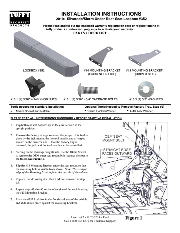 The Tuffy lockbox mounts under the rear seat in Chevy and GMC Crew Cab and Double Cab pickup trucks. This high security welded steel security lockbox has a full width formfitting design creating over 3500 cubic inches of lockable storage. Easily access your secured contents by flipping up the corresponding lid under your 60/40 split bench seat. The unique design allows the full width to be used to stow firearms or other long items. Feel confident securing your gear using Tuffy's Pry-Guard Locking System with three-digit combination security locks with built in weather seals. Mounts inconspicuously under the seat out of sight of opportunistic thieves with chamfered corners for easier passenger access. Declutter your space by quickly and easily installing this Tuffy lockbox using the factory hardware without drilling. When you need additional floor space, simply remove the lockbox in seconds without the need for any tools.