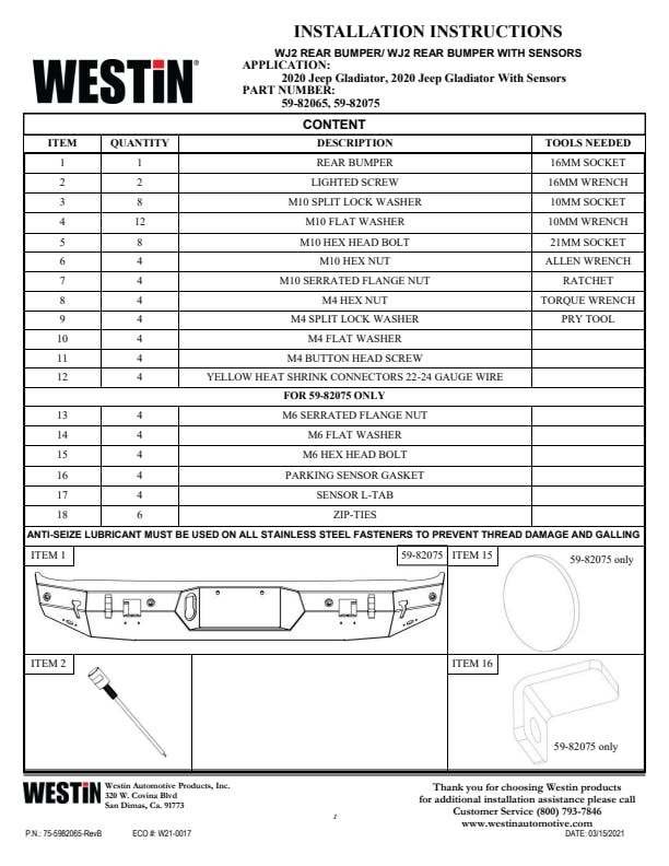 Westins WJ2 Rear Bumper is constructed with 3/16-inch plate steel and features 2 off-road jack mount points. This clean, stylish bumper is designed to work with factory or Westin hitches. Our WJ2 Rear Bumper includes integrated recovery shackle mount points as well as additional mount points for Auxiliary Lights and Rock Lights. Bolt on installation so no drilling is required. Includes bumper, mounting hardware and install instructions.