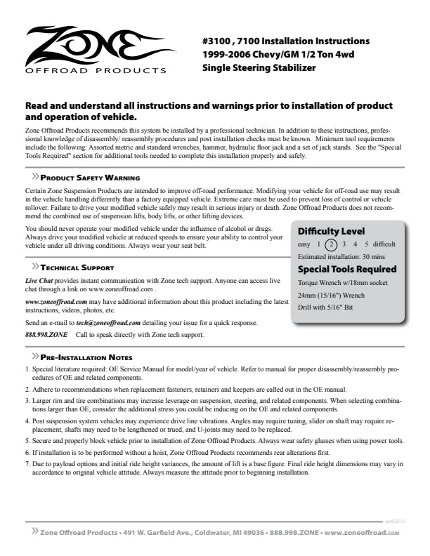 While many vehicles come equipped from the factory with a steering stabilizer, the small cylinder isn't up to the task of controlling oversized tires. Zone Offroad offers upgraded steering stabilizer options to enhance vehicle control by reducing steering shimmy and bump steer. These quality systems are designed to improve tire wear and front end component life as well as lessen side to side motion caused by wide tires and unpredictable road conditions.